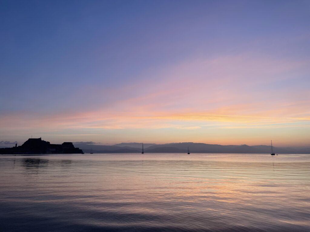 And then relax with a cup of coffee and an unforgettable view of Corfu Old Fortress and Garitsa Bay!