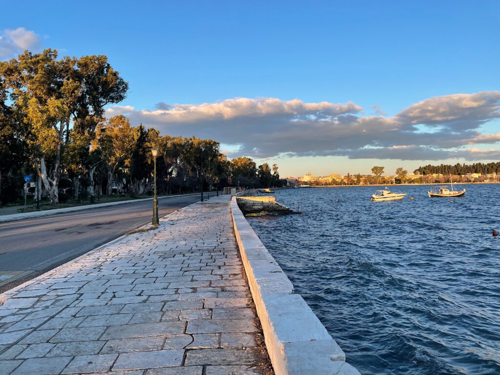 It is a wide boulevard with two different walking paths stretching about two kilometers. In fact, Garitsa has the longest seaside pedestrian road in Corfu, measuring exactly two kilometers long.